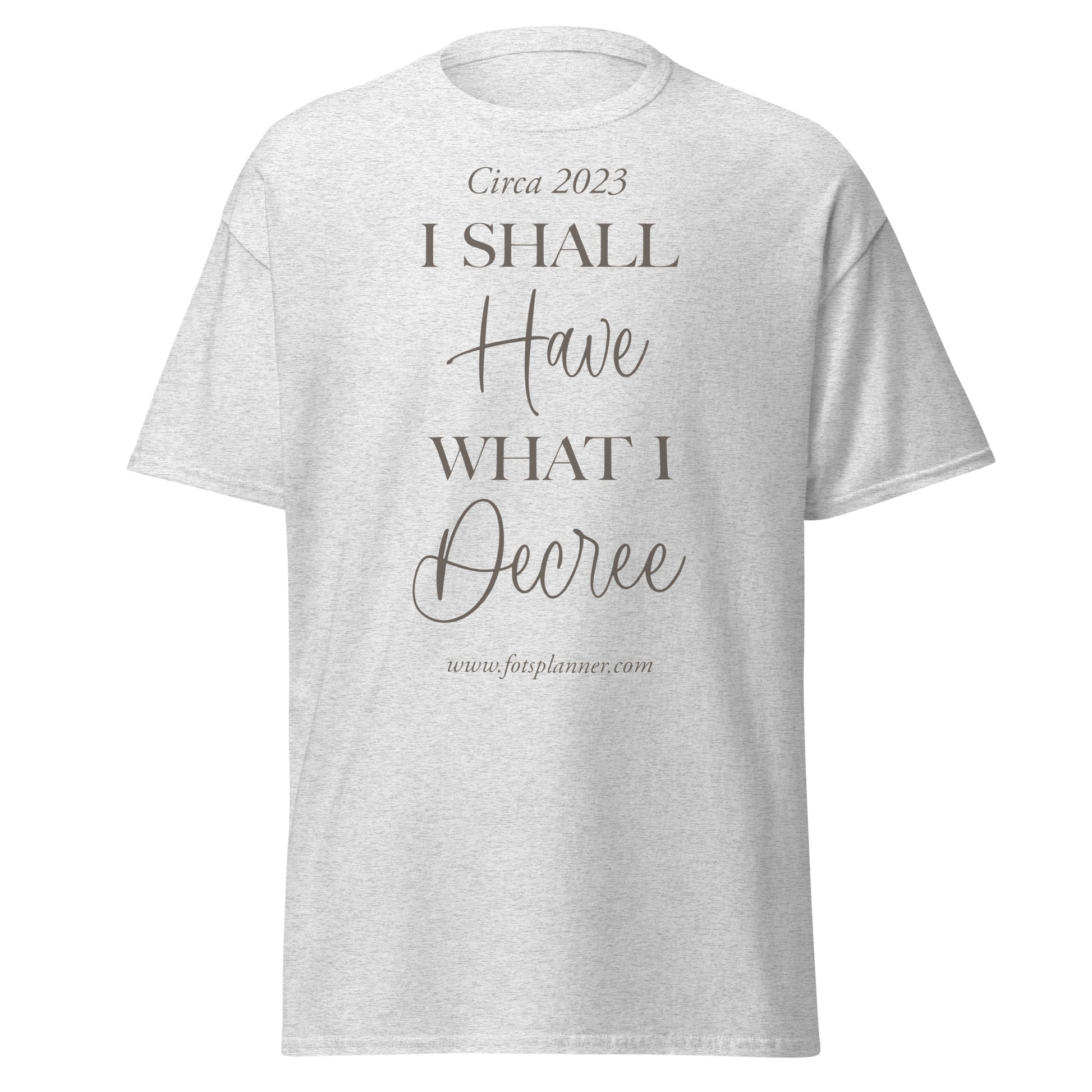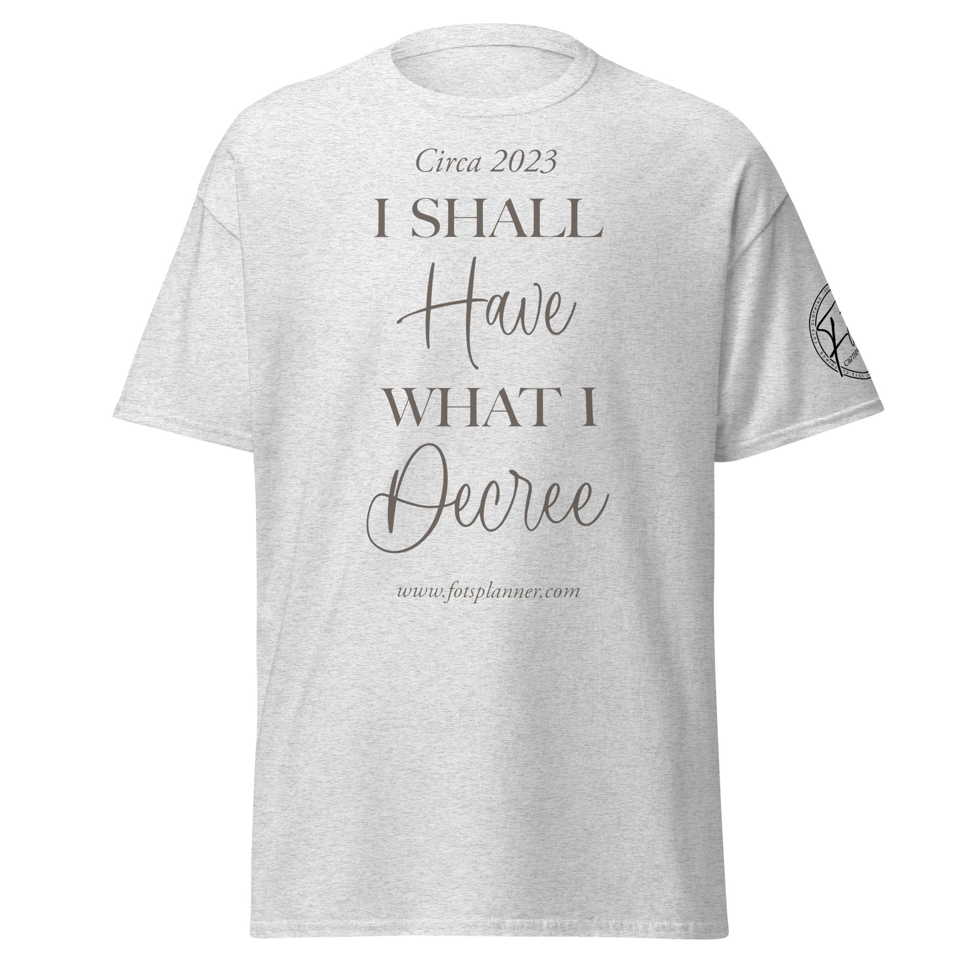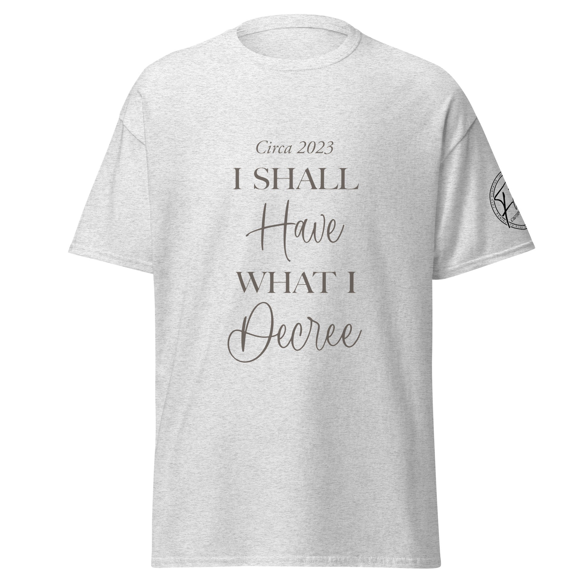 The “decree” tee depicts what will manifest in your life, as a result of the proclamations to change, which you have both written and visualized.